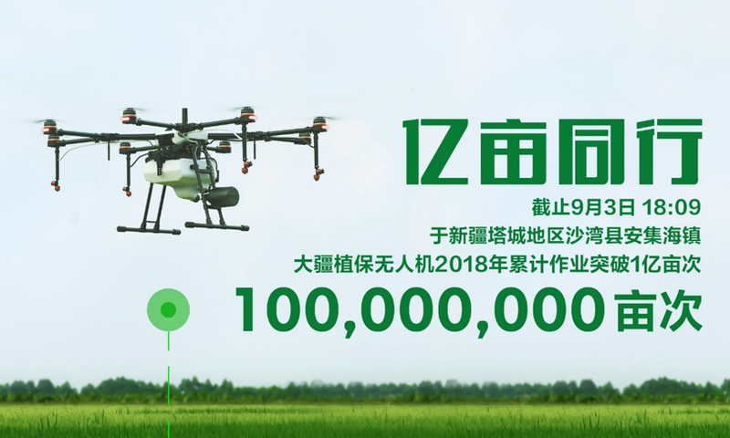 此时此刻,大疆植保无人机2018年国内累积作业面积正式突破1亿亩次。而随后,结合这次亿亩数据里程碑,大疆农服正式发布了《亿亩同行》无人机植保数据报告。