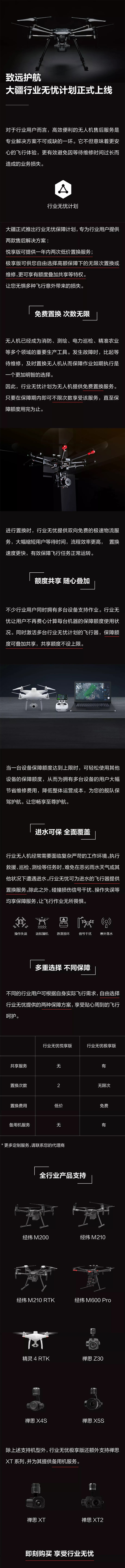 大疆行业无忧计划正式上线、免费置换,次数无线、额度共享,随心叠加、进水可保,全面覆盖、多重选择,不同保障