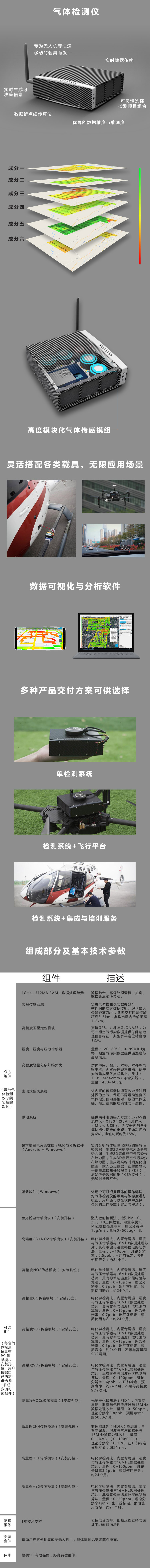 专为无人机等快速移动的载具而设计、实时数据传输、实时生成可决策信息、可灵活选择检测项目组合、数据断点续传算法、优异的数据精度与准确度