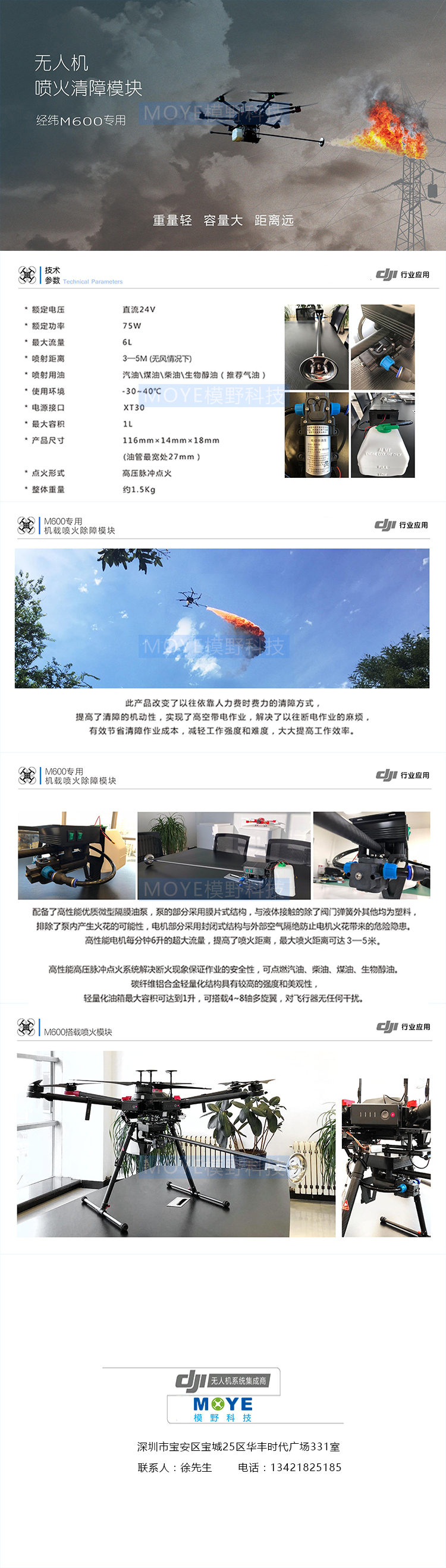 大疆DJI M600 pro喷火装置 无人机喷火器 应急清障模块 点火系统折叠设计