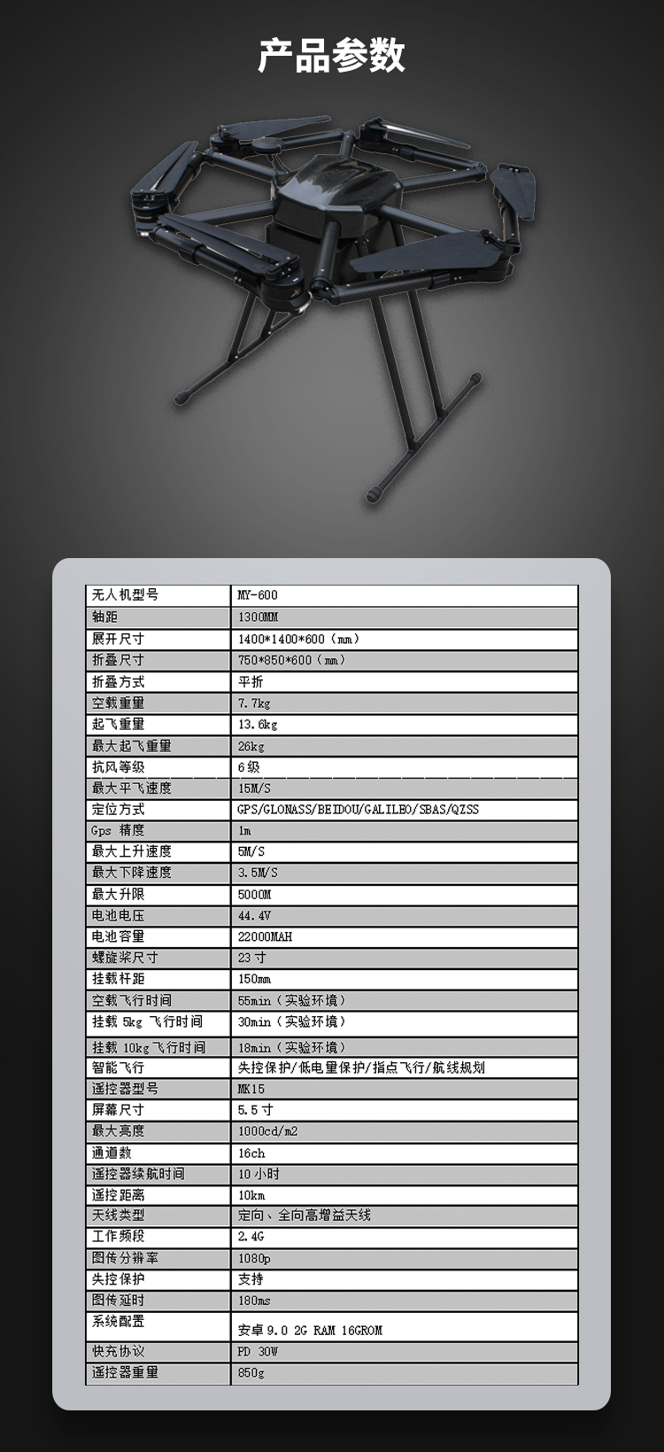MY600多功能六旋翼无人机
