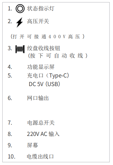 · 本产品采用400V高压。使用不当可能造成人身伤害。请在使用本产品前仔细阅读产品手册。请勿在电源线通电时触摸电源线和插头 连接器。