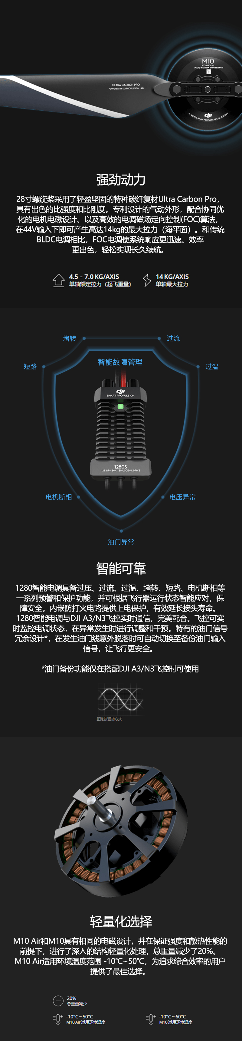 业航拍领域注入更强动力。M10电机、1280 FOC电调和R2880螺旋桨,以高