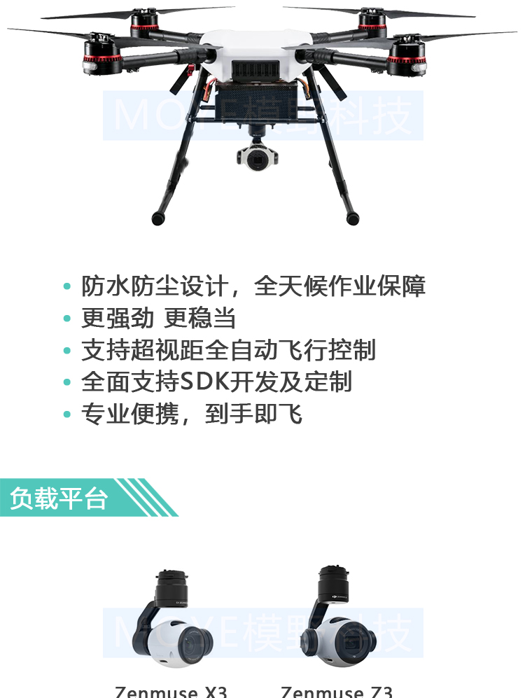 防水防尘设计,全天候作业保障、更强劲 更稳当、支持超视距全自动飞行控制、全面支持SDK开发及定制、专业便携,到手即飞