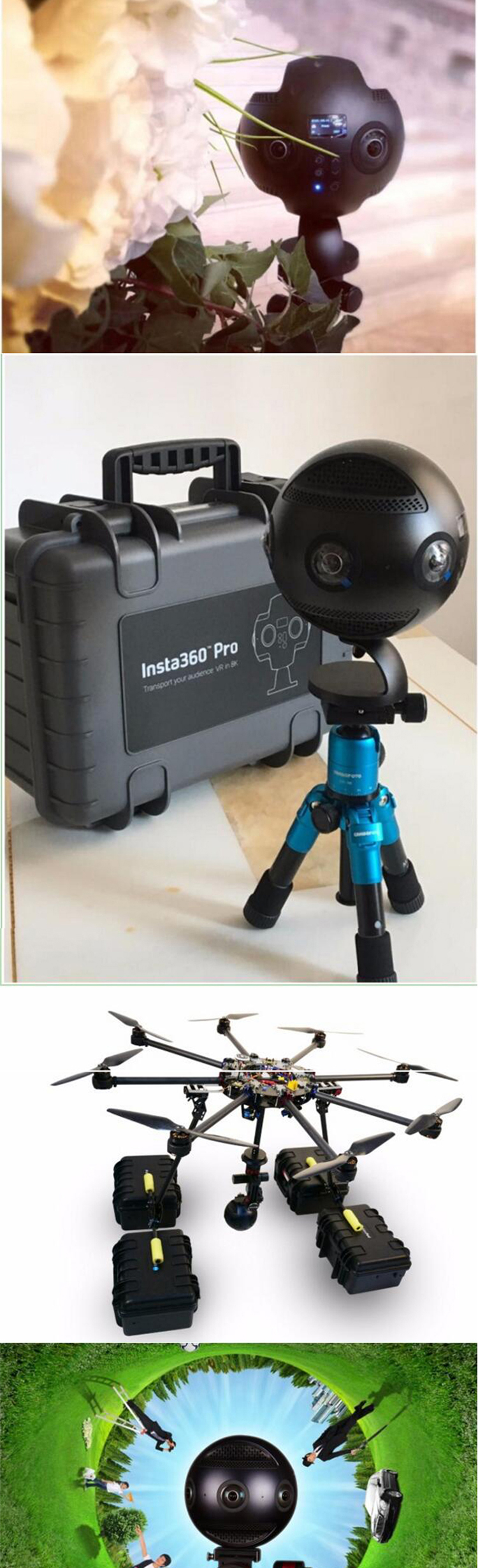8K高清画质、360°全景3D、360°全景直播、运动防抖优化、光流无缝拼接、实时拼接预览