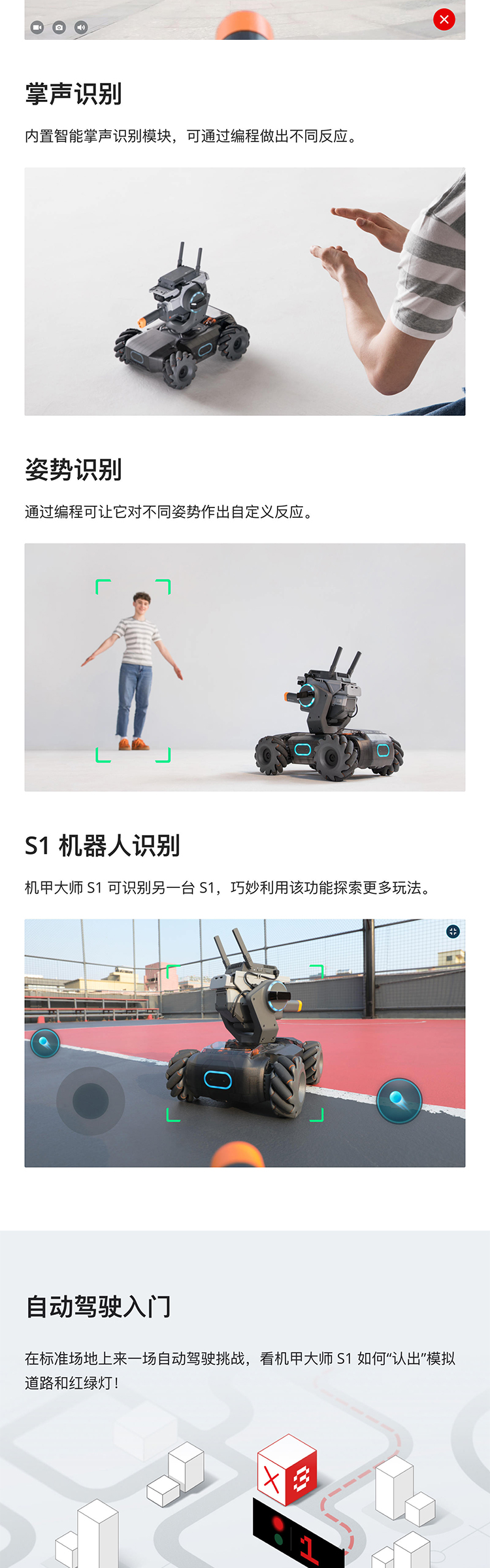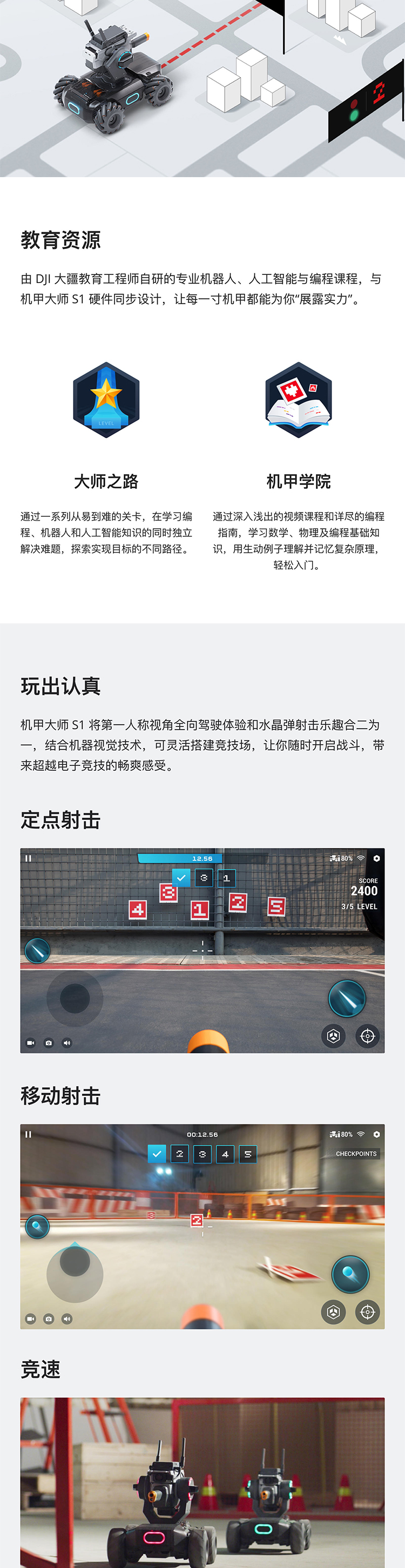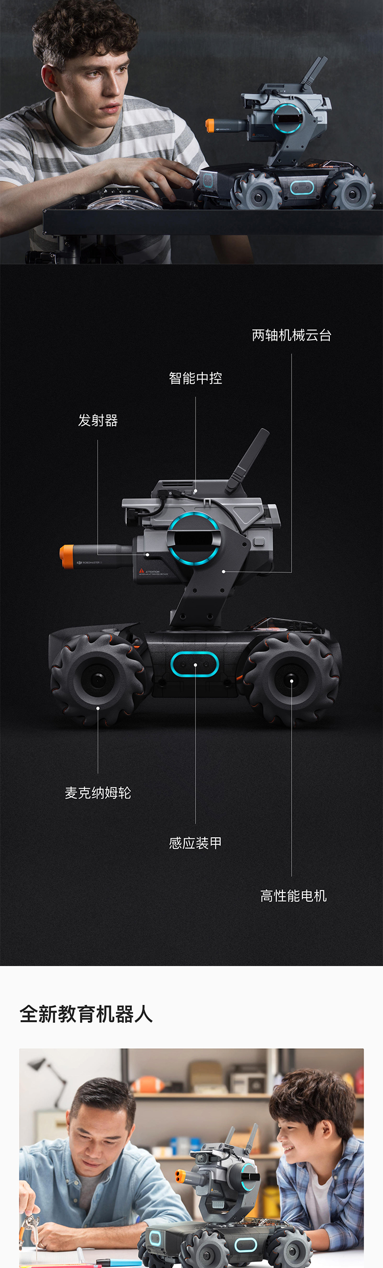 机甲大师 S1 源自享誉全球的机器人教育竞技平台——RoboMaster 机甲大师赛,秉承寓教于乐的设计理念,是 DJI 大疆创新首款教育机器人。你将为它打造独门绝技,在挑战对手的过程中收获知识,超越自我,玩出名堂!